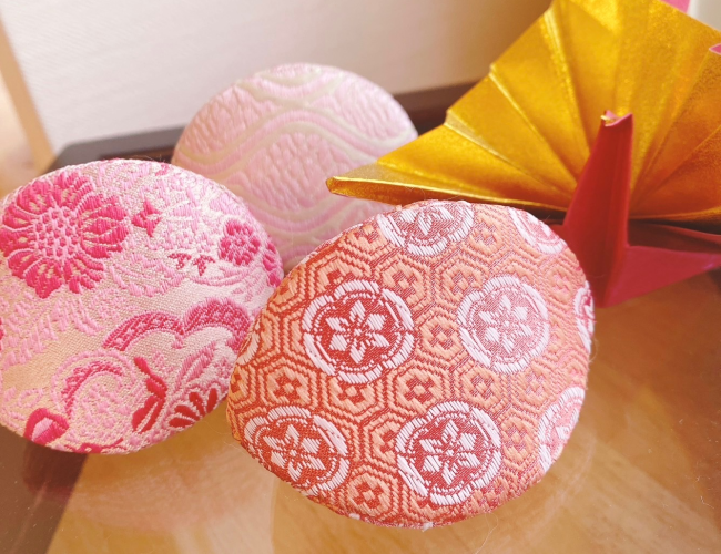 雛人形の布を使った貝殻の形の大きさ5センチ程度の小物入れです。